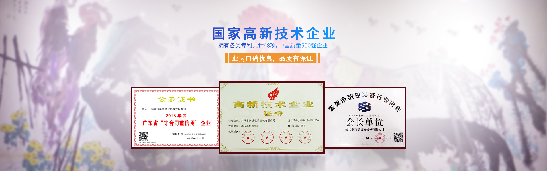 新望機(jī)械成立于1998年,位于東莞市東部工業(yè)園區(qū)的中心地帶——企石鎮(zhèn)東平村,交通方便、環(huán)境優(yōu)美舒適、視野開闊。公司注冊資本2000萬元,擁有辦公室、廠房等18,000多平方米。已通過ISO9001:2015國際質(zhì)量管理體系認(rèn)證,擁有國家各類專利共計58項。是東莞市企石鎮(zhèn)工商聯(lián)副會長單位、東莞市企石鎮(zhèn)文學(xué)藝術(shù)界聯(lián)合會副主席單位、東莞市環(huán)保包裝行業(yè)協(xié)會副會長單位、東莞市數(shù)控裝備行業(yè)協(xié)會第二屆會長單位、廣東省包裝技術(shù)協(xié)會常務(wù)理事單位、廣東省膠粘劑行業(yè)協(xié)會理事單位、廣東省著名商標(biāo)企業(yè)、國家高新技術(shù)企業(yè)。
